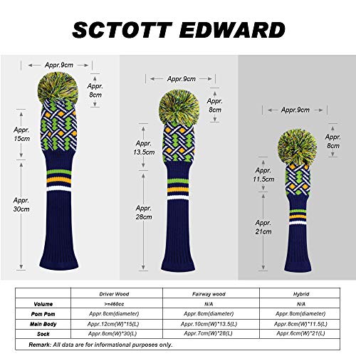 Scott Edward Set di 3 copritesta per mazze da golf in maglia, per mazze da golf (460 CC), fairway e ibridi/UT con etichette con numeri rotanti (quattro colori)