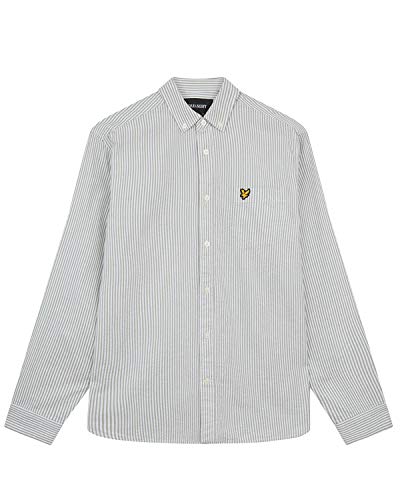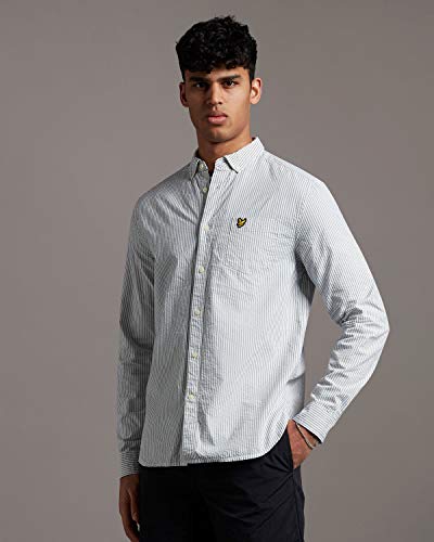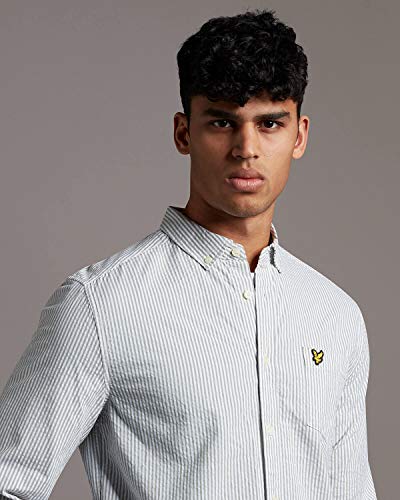 Lyle & Scott Seersucker Camicia da Uomo A Righe Fini, Verde/Bianco M