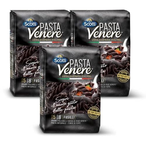 3X Scotti Pasta Venere Fusilli di Grano Duro Integrale e Farina di Riso Nero Venere 400g [3 Confezioni]