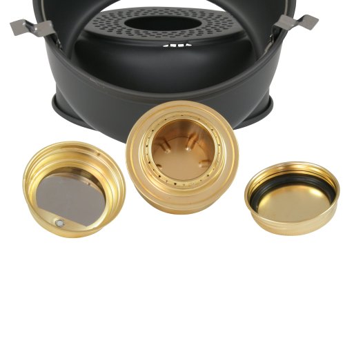Set di padelle da campeggio | 1,7 L pentola | 1,4 litri | 1 pentola Ø 215 mm | Base per bruciatore o fornello a gas | Portapentole a parabrezza a 3 punti di appoggio | Bruciatore di liquido | Pinza a tazza