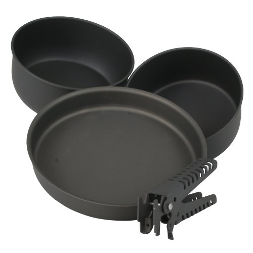 Set di pentole per 3 - 4 persone | Set di 7 pentole da cucina in 7 pezzi | Set Contenuti: 2 pentole, 1 padella, 1 pinza, bruciatore di benzina | Supporto | Parabrezza | Materiale: alluminio anodizzato duro