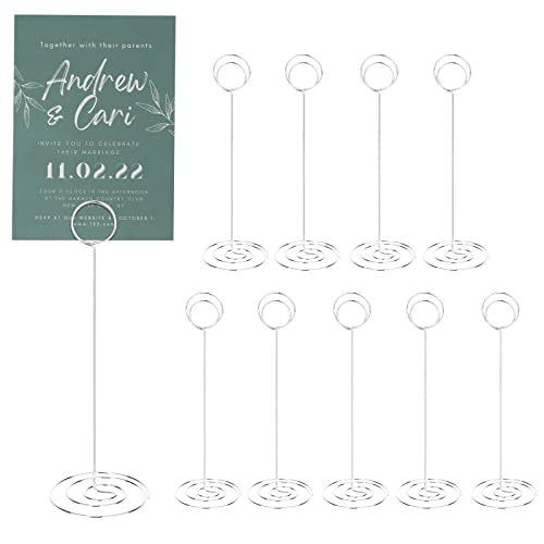 Porta segnaposto da tavolo: altezza 22 cm, diametro base 7 cm. Rispetto ad altri supporti da tavolo corti/piccoli, il design più alto del supporto e la base a vite più ampia sono più facili da riconoscere e più stabili. Perfetto per esporre biglietti di nozze, biglietti da visita da scrivania, piccole immagini, compiti d'ufficio, promemoria, appunti quotidiani, biglietti prezzi, etichette alimentari, segnaposto per diverse occasioni.