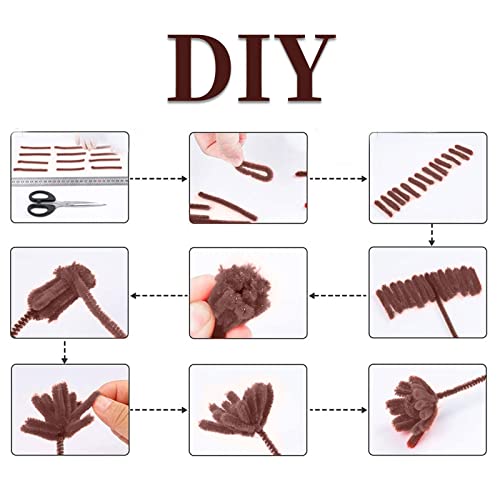 Set Scovolini, Creativi Bambini Set Bricolage, Forniture di Materiale Fai-Da-Te, Kit per Lavoretti per Bambini, Scovolino Marrone per L'artigianato, Scovolino e Pompon