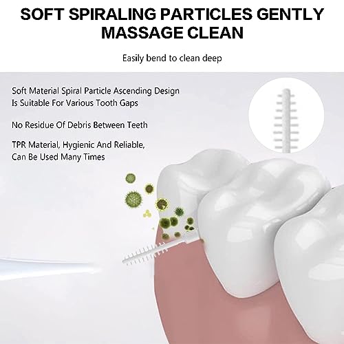 Materiale siliconico: Realizzato in silicone morbido e plastica di alta qualità, comodo e sicuro da usare. È facile scorrere tra i denti e rimuovere in modo sicuro placca dentale e residui alimentari. Molto adatto per impianti e cure ortodontiche. Può anche essere riutilizzato.