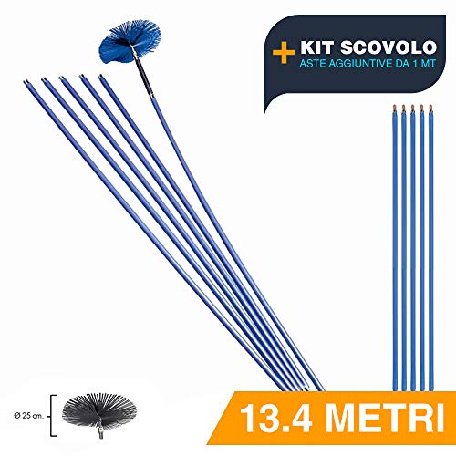 Scovolo per canna fumaria, allungabile con 5 aste aggiuntive (13.4 METRI) Scovolo Ø25 Cm