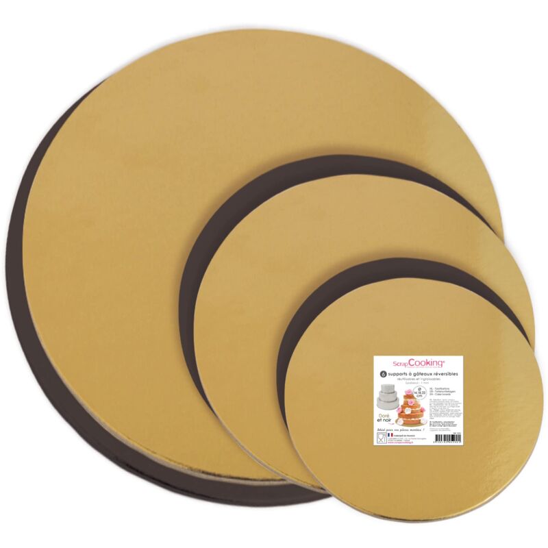 Descrizione Set di 6 staffe per diversi diametri per presentare i vostri dolci, torte nuziali e altri dolci. 6 Questi materiali sono stati appositamente progettati per uso alimentare. Il cartone utilizzato è riutilizzabile e da forno. I formati sono adattate a plasmare la torta ScrapCooking. Ogni confezione contiene 2 staffe Ø14 cm, Ø18 cm 2 staffe, 2 staffe Ø22 cm di spessore / 1 mm.