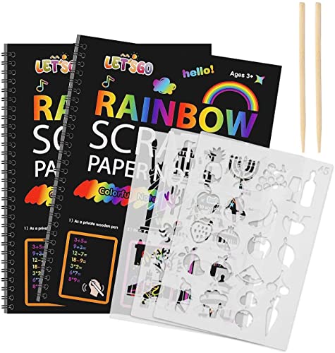 【Differenza dal tradizionale libro da colorare】 - Si compone di 20 pezzi di cartone nero rilegati in un libro a bobina e viene fornito con 2 matite di legno e 3 modelli di disegno. Basta usare la matita di legno inclusa per raschiare semplicemente lo strato nero per rivelare i bellissimi colori dell'arcobaleno! I genitori non devono preoccuparsi che i bambini si sporchino sul viso, sulle mani, sui vestiti e sui mobili mentre dipingono.