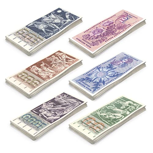 Scratch Cash Bundle Franchi Svizzeri Quinta Serie Soldi per Giocare - 6 mazzette 25 x 10, 20, 50, 100, 500 e 1000 (Dimensioni Reali)