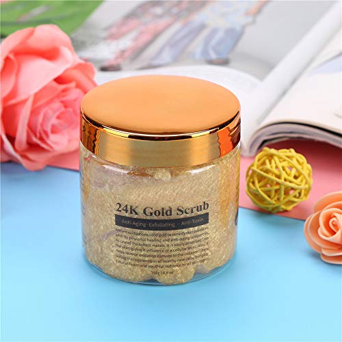 Pure 24K Gold Anti Scratch Scrub per il corpo Riduce l'aspetto del sole Danneggiamento Linee sottili e rughe Esfoliante corpo Scrub Sale da bagno