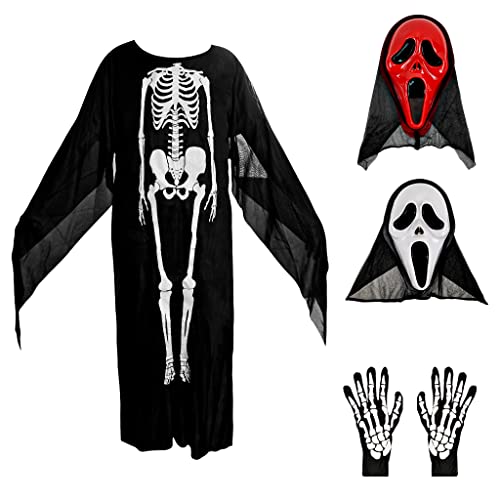 Scream Maschera Set, 2 Pezzi Maschera Spaventosa Maschera Halloween Scream, Include 1 paio di Guanti, 1 Costume da Fantasma, Halloween Costume Cosplay Accessori Scream Decor Masks per Adulti Unisex
