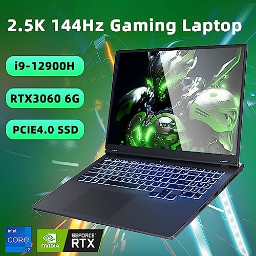 16 Inch Big Screen Gaming Laptop Windows 11 Pro, 12th Gen Intel i9 12900H NVIDIA RTX 3060 6G, 64GB DDR4 1TB NVMe, 165Hz IPS Notebook Gamer PC Computer, WiFi6 BT5.2, Colorful Backlit Keyboard
