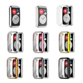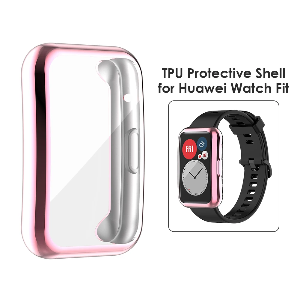 TPU Soft Full Screen Glass Protector Case Shell Edge Frame For Huawei Watch Fit Strap Band Protective Bumper Cover Accessories