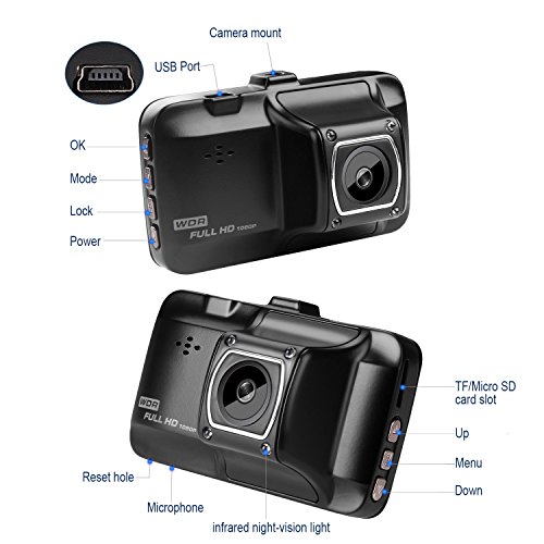 SRIRAGE ESTERNO SUPPORTO: Fino a 32GB TF card registrazione lasso di tempo, un unico pulsante di registrazione video di emergenza e salvataggio, un unico pulsante di registrazione audio on / off. luminosità regolabile manualmente, contrasto, bilanciamento del bianco