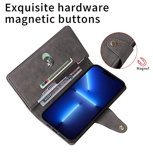 SCRENDY Cover per Oppo A93 5G/A74 5G/A54 5G, Custodia Protettiva Libro con Porta Carte Integrati Chiusura Magnetica, Portafoglio Flip Cover con Cinturino da Polso e Cerniera-Grigio