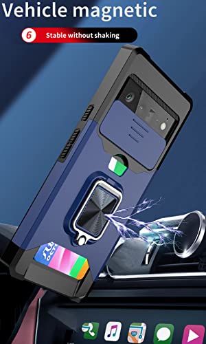 SCRENDY Cover per Google Pixel 6, Protezione Fotocamera Anti Graffio Hard PC Cover, TPU+PC Dual Layer Custodia Porta Carte con Cavalletto, Argento