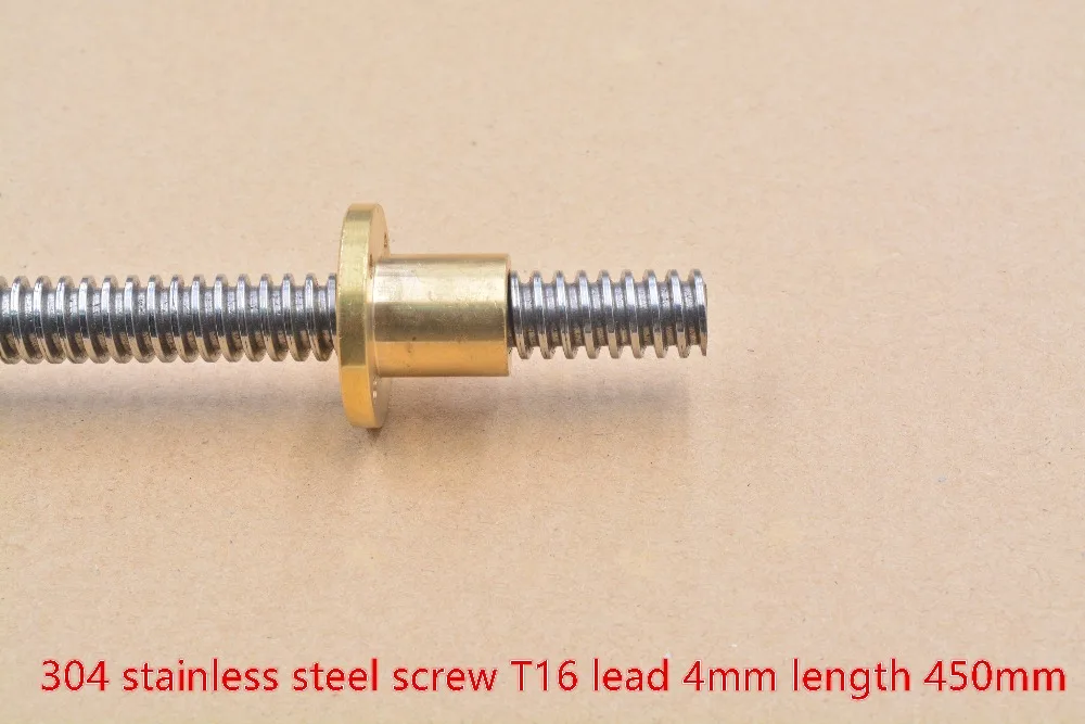 T16 screw 16mm length 450mm pitch 4mm lead 304 stainless steel trapezoidal with brass copper nut 1pcs