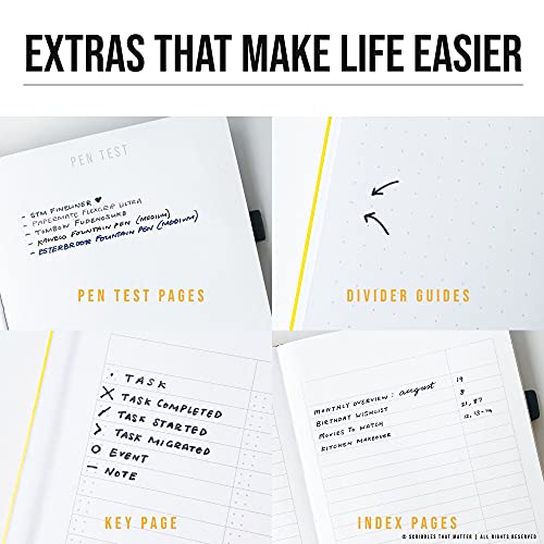 AMATO DALLA COMUNITÀ DI BULLET JOURNALING. Con dettagli ponderati per aiutarti a mantenere organizzati i tuoi pensieri e le tue idee (tra cui una pagina con codice chiave, pagine indice, pagine punteggiate pre-numerate, pagina di prova con penna e due segnalibri con codice colore), abbiamo pensato a tutto in modo che tu possa concentrarti su la parte divertente di renderlo davvero tuo.