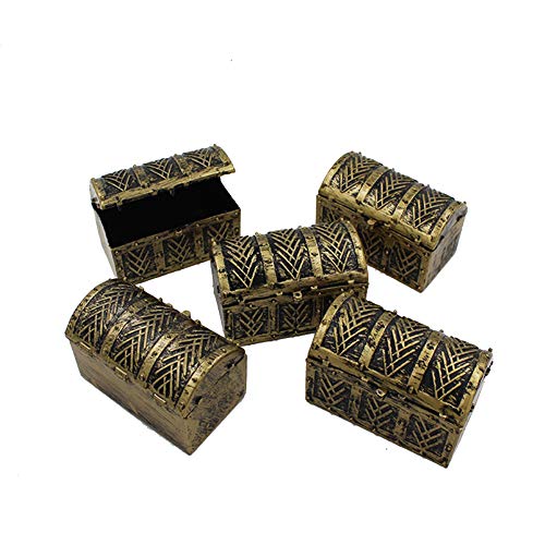 10 mini scrigni del tesoro dei pirati per bambini, pirati, tesori in plastica, vintage, scatola del tesoro di colore antico, per feste, oggetti di scena, decorazione scrigno del tesoro (antico)