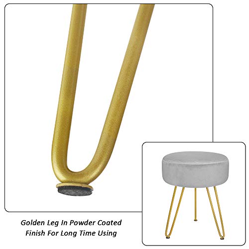 Scriptract Poggiapiedi rotondo in velluto ottomano moderno tavolo da toeletta, scarpiera per soggiorno camera da letto con 3 gambe in metallo dorato (sgabello grigio)