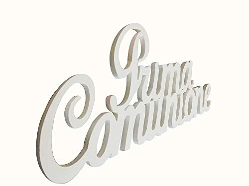 Scritta in legno prima comunione buone dimensioni, lunghezza 30 cm altezza 15 cm, spessore 8 mm,versione color bianco, ideale per cerimonie. Rigorosamente made in Italy, nostra produzione.