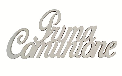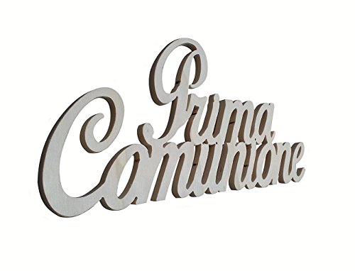 Scritta in legno prima comunione buone dimensioni, lunghezza 30 cm altezza 15 cm, spessore 8 mm,potete scegliere tra la versione gia' colorata, oppure la versione levigata e pronta alla decorazione, ideale per cerimonie. Rigorosamente made in Italy, nostra produzione.