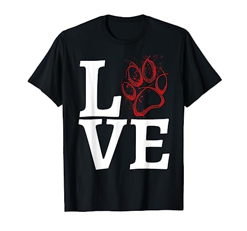 Disegno con testo love e la zampa di un cane al posto del cuore. Perfetta per gli amanti del proprio cucciolo. Stampe con scritte divertenti e frasi simpatiche ed ironiche per uomo e donna, ragazzo e ragazza amanti dei cani.