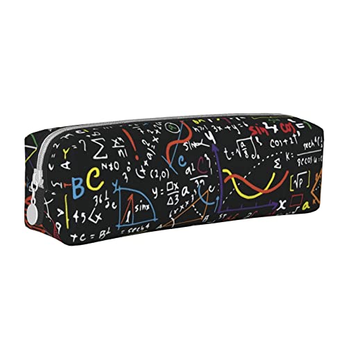 Scritto a mano Formule matematiche modello astucci matita rotonda in pelle matita sacchetto porta penna sacchetto con cerniera per donne uomini ufficio adulti bambini