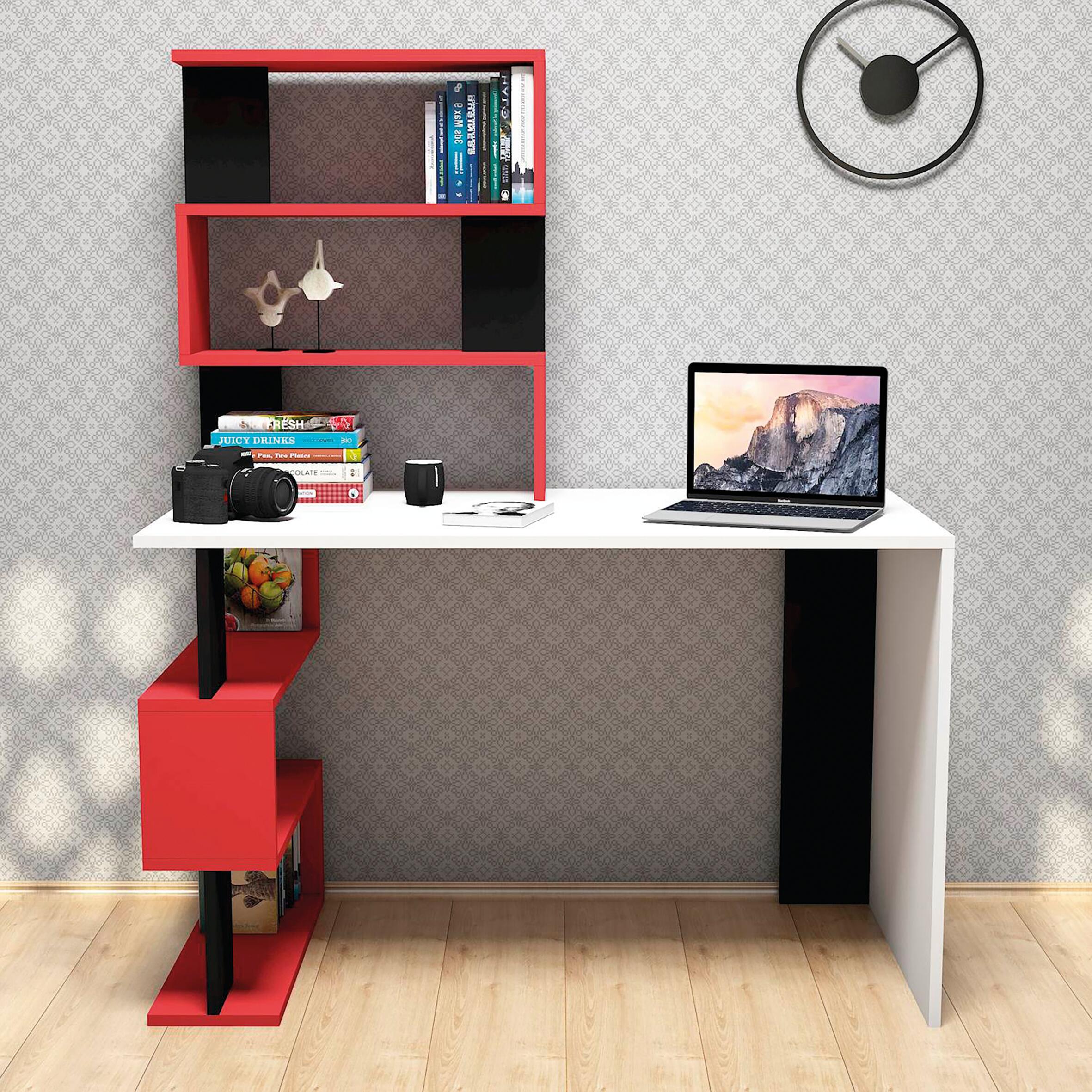 Scrivania moderna e funzionale, è la soluzione perfetta per rendere il lavoro più confortevole. Adatta per il supporto di tutti i pc e stampanti. Grazie al suo design è ideale sia per la casa che per l'ufficio. Kit di montaggio incluso. Mod. Snap - Col. Bianco, Rosso, Nero. Facile da pulire. Facile da montare