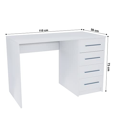 Scrivania Con 4 Cassetti Scrittoio Da Studio Mobile Desk da Ufficio In Legno Design Moderno Nicosia Elegante Per Soggiorno Sala Da Pranzo Ufficio 110 x 73 x 56 cm (Bianco)