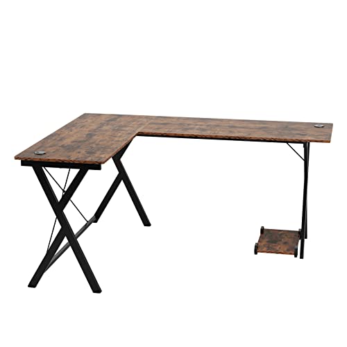 Scrivania per Computer ad Angolo,Scrivania reversibile a forma di L Supporto per CPU,Scrivania da Gioco Tavolo da Lavoro per Ufficio,Tavolo da Lavoro per Ufficio 120x158x72cm Marrone Vintage e Nero
