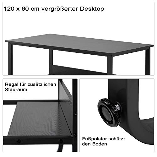 Desktop in legno ingrandito. Con dimensioni di 120 x 60 x 73 cm (lunghezza x larghezza x altezza), questa scrivania è adatta a quasi tutte le esigenze di lavoro o studio. I materiali da ufficio trovano il loro posto senza problemi. Grazie all'altezza appropriata e allo spazio spazioso sotto il tavolo, puoi allungare liberamente le gambe e alleviare la stanchezza.