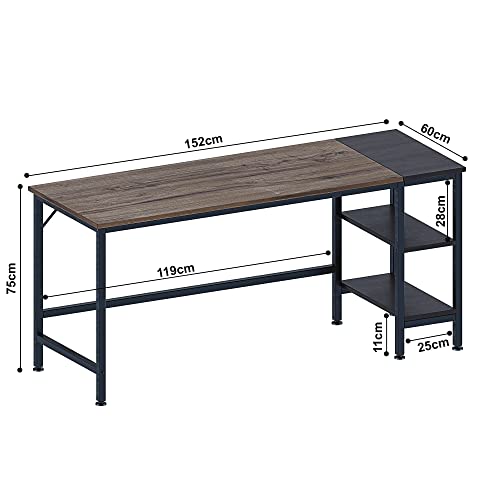 Scrivania Per Computer Tavolo Legno Porta PC Laptop Scrittoio Mobile Desk Gambe In Metallo Da Ufficio Con Ripiani Per Studio Soggiorno Sala Pranzo Cameretta Gardnerville Quercia (152 x 60 x 75 Cm)