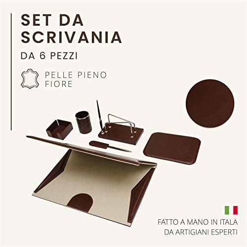 Set da Scrivania 6 Pezzi - 100% Pelle Pieno Fiore - Fatto a Mano in Italia da Esperti Artigiani - Elegante e Funzionale, ideale per l'Ufficio - Marrone