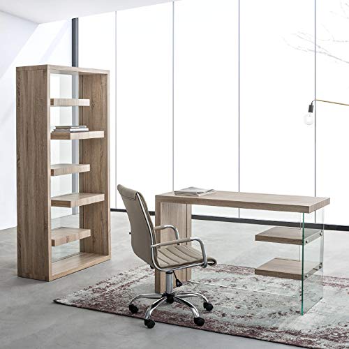 Milo srl Scrivania con Piedi in Vetro Temperato Trasparente Tavolo 120 X 50 Tavoli da Interno Legno Moderno Scrivania Tom Naturale (Rovere, Scrivania 120 x 50 cm)