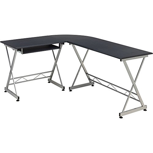 Scrivania scrittoio angolare con ripiano per Tastiera per Home Office in Grafite Nero Effetto - Piranha mobili Dorado PC 9 g