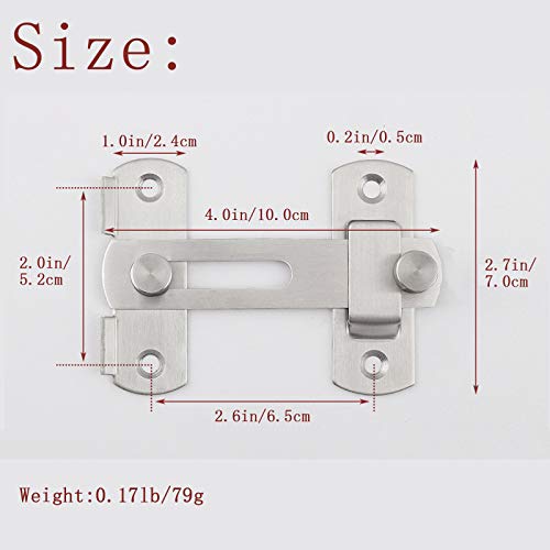 Scrocco Porta In Acciaio Inox Serrature Per Porte Di Sicurezza In Fermo Della Del Bagno Finestra Serratura Scorrevole Di Sicurezza Per Cancello Spinta Robusto E Durevole 4.0*2.7 Pollici(2 Confezioni)