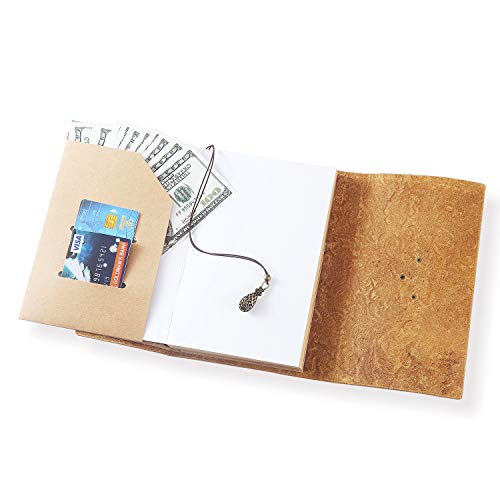 ScrodCat - Taccuino in pelle, fatto a mano, rilegato in pelle, per uomini e donne, con pagine bianche, 19 x 14 cm, diario di viaggio con lucchetto (Red Brown)