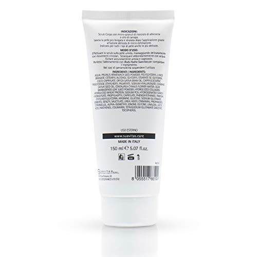 SCRUB CORPO adatto per tutti i tipi di pelle, anche le più delicate. Rimuove delicatamente le impurità e le cellule morte, liberando i pori ostruiti. La pelle risulta finalmente libera di "respirare". Fin dalle prime applicazioni si noterà un cambiamento sia della grana della pelle, sia del colorito, che sarà più luminoso e uniforme. Contribuisce a diminuire l'impatto visivo di alcuni inestetismi cutanei.
