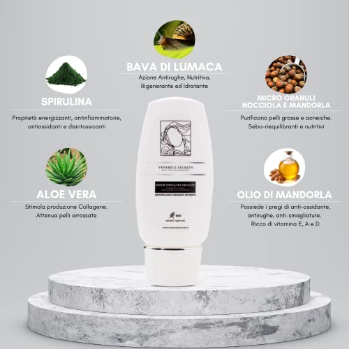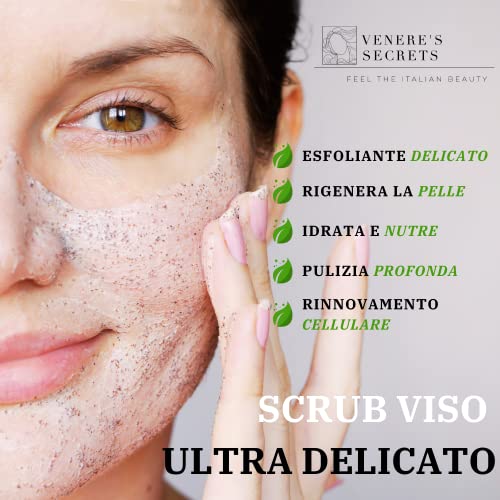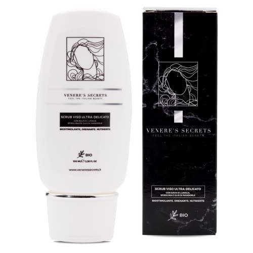 Scrub Viso Ultra Delicato VENERE'S SECRETS (100ml) | Scrub con Micro Granuli di Nocciolo e Mandorle | Adatto a Pelle Grassa, Acneica, Mista e Normale (Bava Lumaca, Spirulina e Olio Mandorle)