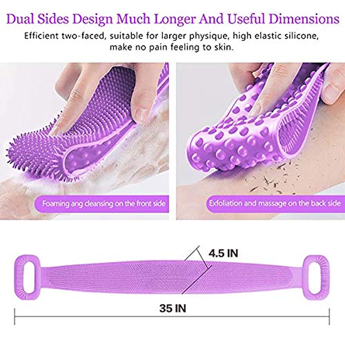 Scrubber posteriore in silicone per doccia, spazzola per il corpo del bagno, 90 cm, extra lungo, doppio lato con manico, per uomini e donne, colore: viola