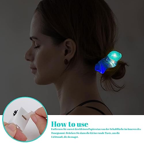 L'elastico è elastico, che può aiutarti a tenere i capelli stretti. La luce a LED e la batteria del pulsante sono incorporate, trattengono a lungo