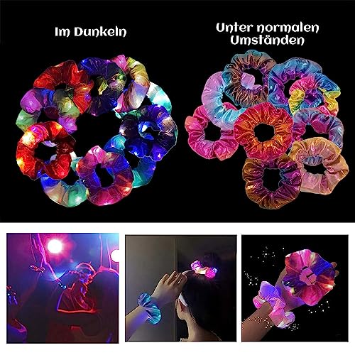 Scrunchies Capelli LED,Fasce colorate per capelli luminose,Cerchietto luminoso,Elastico multicolore Luce Fasce per Capelli Luminosi Supporto per Coda Cavallo (10PCS)