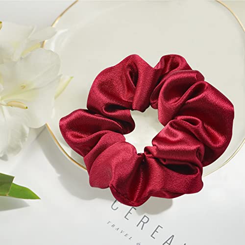 Scrunchies Seta, Morbido Anello per Capelli Vera Seta, Fasce per Capelli Elastici Fascette per Capelli Porta coda di Cavallo per Capelli per Donne e Ragazze (Rosso)