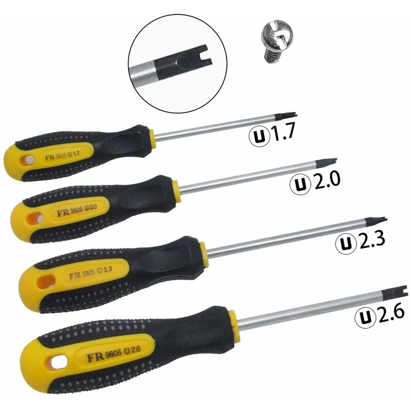 KIT DE DESTORNILLADORES NRG CLEVER ATENCION: Si recibe un producto defectuoso, tiene alguna duda o consulta, póngase en contacto con nosotros lo antes posible. Nuestro equipo de atención al cliente le responderá en menos de 24 horas. El paquete incluye: 4 x Destornilladores de tipo U 4 x Destornilladores de 3 puntas 5 x Destornilladores de triángulo 1 x Destornillador de cruz inversa