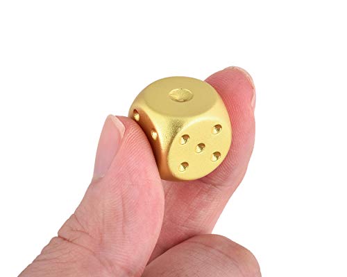 SCSpecial Dadi in Lega di Alluminio 5 Pezzi Dadi in Metallo Portatili da 16 mm con Custodia Rettangolare Dadi a 6 Facce per Bere Party Game - Oro