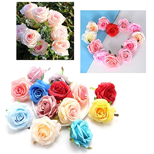 Sctmda Fiori Artificiali 50 Pezzi Teste di Rosa Teste di Fiori di Seta Rosa Teste di Rosa Artificiale di Seta Fiori Finti per Decorazioni Finti Rose Mini Fiori di Seta Colorati 3cm per Matrimonio