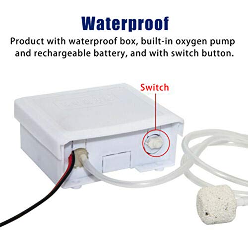 La scatola impermeabile ha una pompa di ossigeno integrata e una batteria ricaricabile, e ha un pulsante on-off per un facile funzionamento.