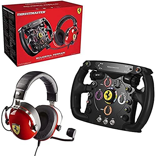 Kit Thrustmaster multipiattaforma composto da cuffie e volante: cuffie per videogiochi ispirate alle vere cuffie utilizzate nei paddock della Scuderia Ferrari, oltre a una replica rimuovibile del volante della monoposto di Formula 1 Ferrari 150° Italia, per tutti i fan della Scuderia Ferrari.