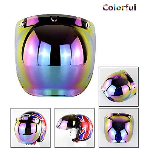 Scudo a Bolle con Visiera a 3 Bottoni con Supporto Reversibile Bianco Accessori universali per Casco a Tre Pulsanti per Moto da Strada Casco Aperto retrò,Gold