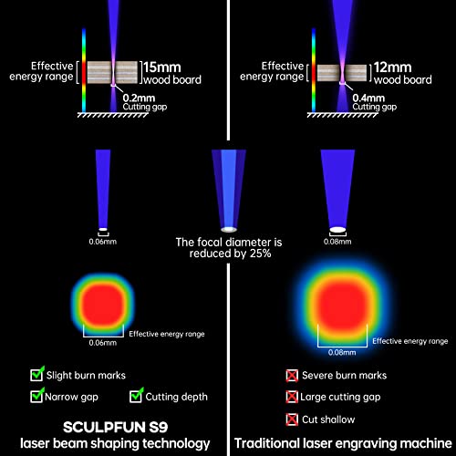 SCULPFUN S9 90W Effetto Incisore Laser, CNC 15mm Macchina Taglio Laser, Messa a Fuoco Precisa, Tutto Metallo, per Vetro, Pelle, Acrilico, Ceramica 410 * 420mm